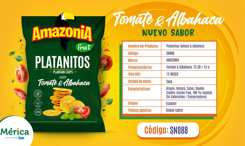 Crujientes chips de plátano verde combinados con el frescor del tomate y el toque aromático de la albahaca. Una fusión deliciosa y original que convierte el snack en una experiencia única, saludable y diferente.🥭 Elaborados con plátano verde natural