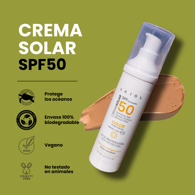 Esta crema solar natural con filtros minerales proporciona alta protección SPF50 contra las radiaciones solares. Ideal para pieles sensibles, su fórmula incluye dióxido de titanio y óxido de zinc, que protegen sin dejar la piel grasa ni blanquearla. El tono marrón, logrado mediante pigmentos minerales, se adapta al color de tu piel, ofreciendo un bronceado atractivo.